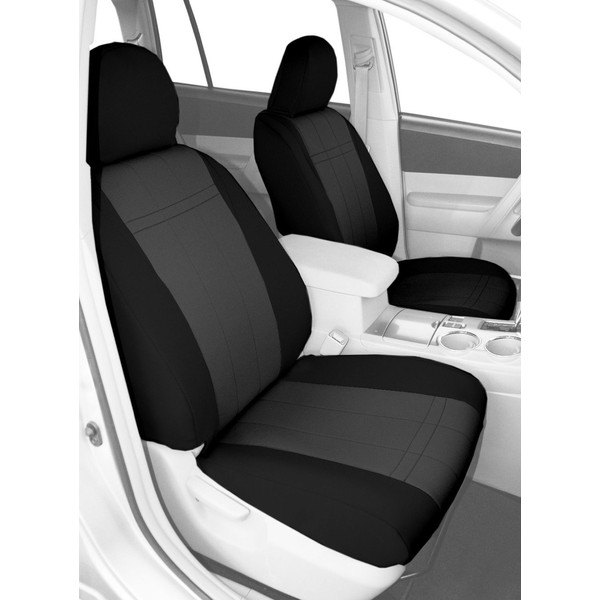 - PRECISION CUT- Buckets with separate headrest with flat folding passenger seat with driver lumbar with driver manual knobs with out side airbags, Premium NeoSupreme-style seat covers are precision cut and custom tailored to vehicle factory specifications