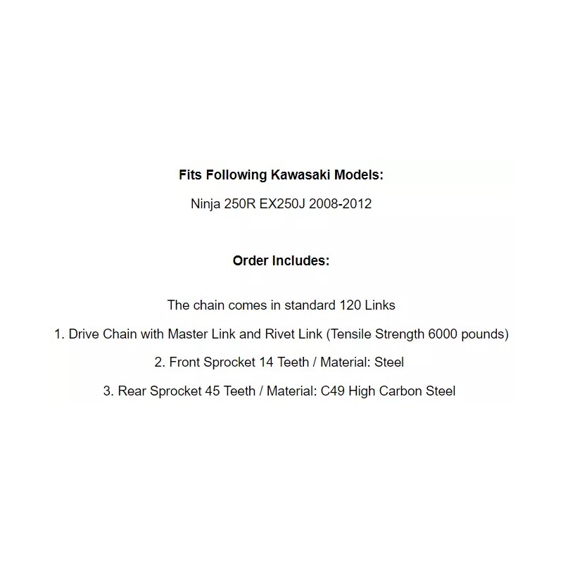 Caltric Black Drive Chain And Sprocket Kit for Kawasaki Ninja 250R EX250J 2008-2012
