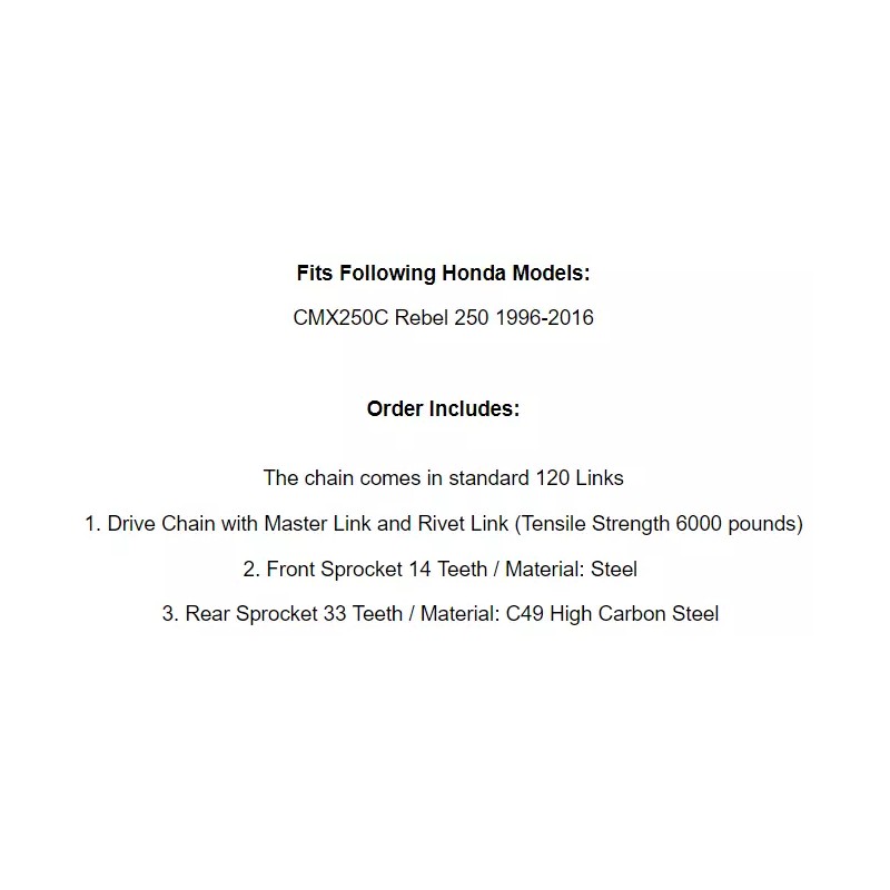 Caltric Drive Chain & Sprockets Kit for Honda CMX250C Rebel 250 1996-2016