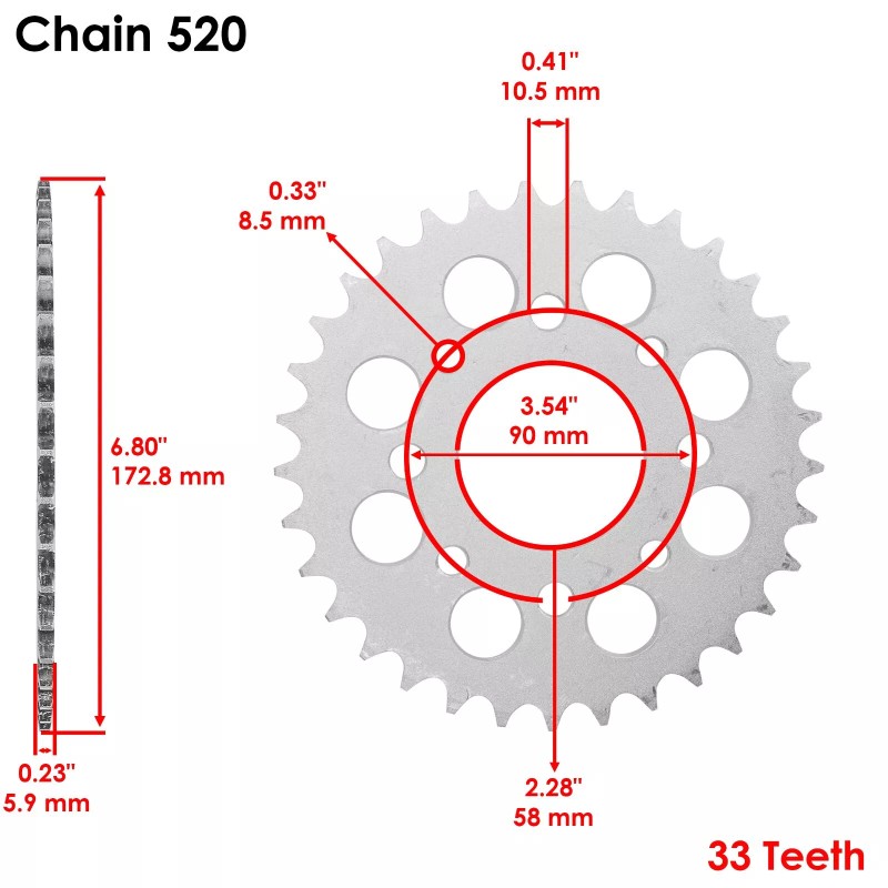 3. Rear Sprocket 33 Teeth / Material: C49 High Carbon Steel