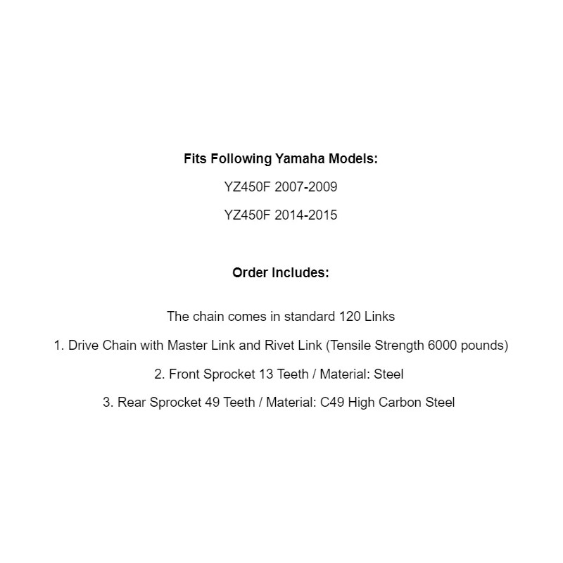 Caltric Drive Chain & Sprockets Kit for Yamaha YZ450F 2007-2009 2014 2015