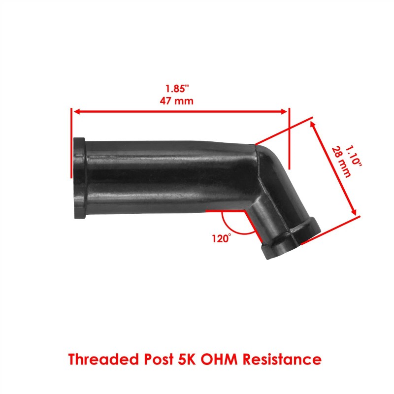 Threaded post terminal. 5K Resistance. All 4 Cylinder Models take 2 different types of Plug Cap. Please double check part number and measurements before ordering.