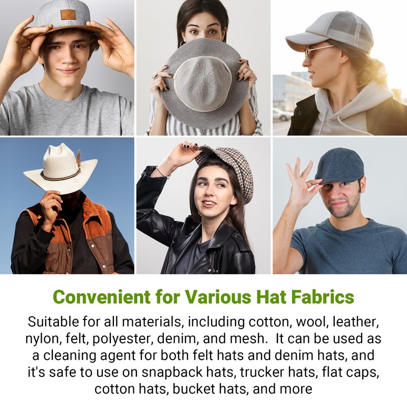 - Convenient for Various Hat Fabrics: Suitable for most materials, including cotton, wool, leather, nylon, felt, polyester, denim, and mesh. The hat cleaner kit is safe for baseball caps, felt caps, and cowboy hats