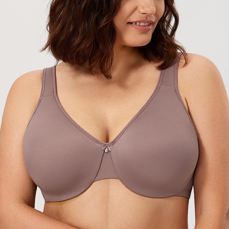 CALVENA Women's Minimizer Bra Full Coverage Plus Size Smooth Underwire Seamless Bra Mochaccino 38F