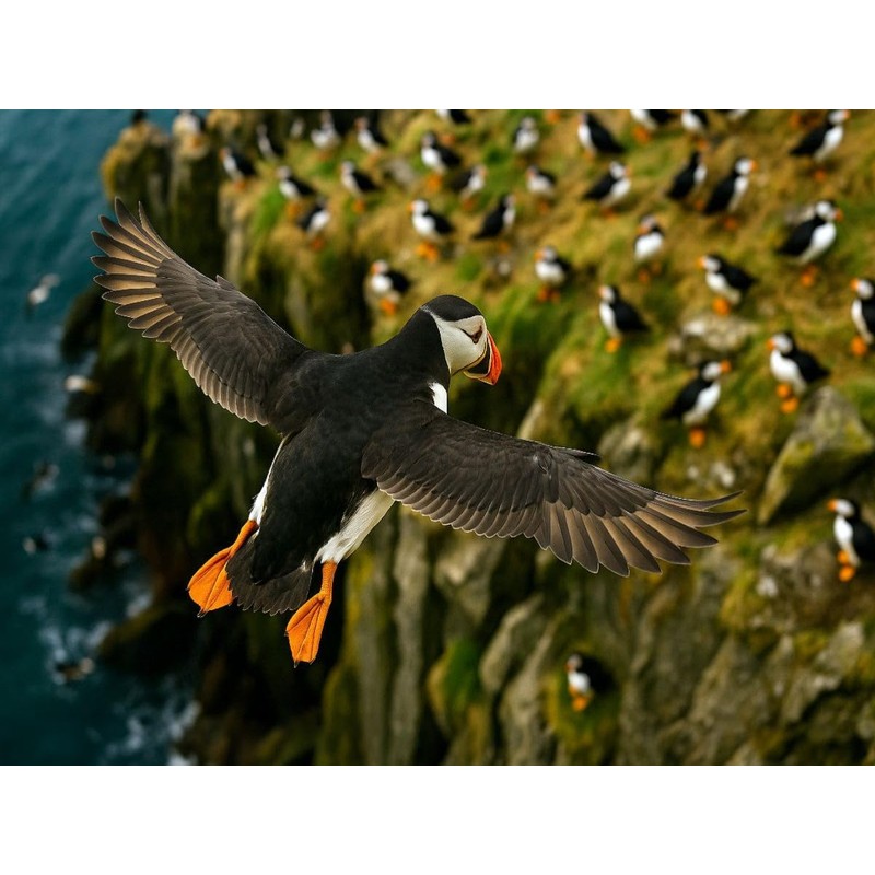 CALVENDO Puzzle Puffin in Flight on The Cliff | Size