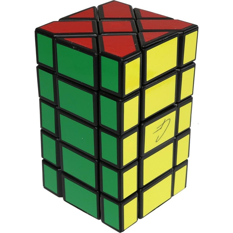 The Corey 3x3x5 Fisher Cuboid is based on the design of the 3x3x5 cuboid and turns 45 degree just like the CrazyBad 4x4x6 Fisher Cuboid. This is a wonderful puzzle in the 3x3x5 cube series. The cutting is elegant and brings even more challenge to solve it. The mechanism does not have much corner-cutting ability (like the speed cubes), but it does turn smoothly.