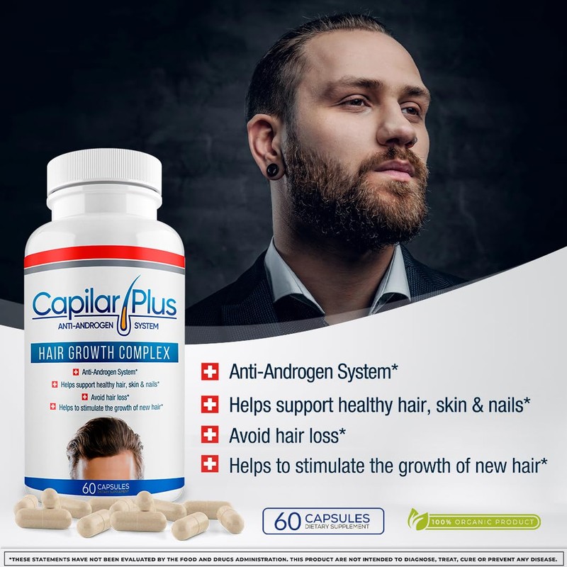 CalviStop | Capilar Plus with Anti-Androgen System | Hair Growth Supplement | Hair Loss Treatment | Healthy Skin, Hair & Nails - Count 60 (1)