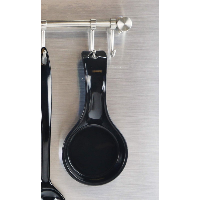 - Spoon rest is perfect size to use to keep counters clean and free of mess; measures 8 1/2 x 4-inch in black