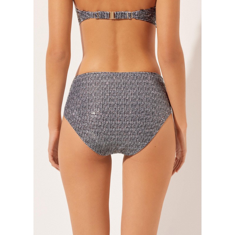 - Bikini bottom with a high waist with a shaping effect on the abdomen, guaranteed by a special tulle at the front