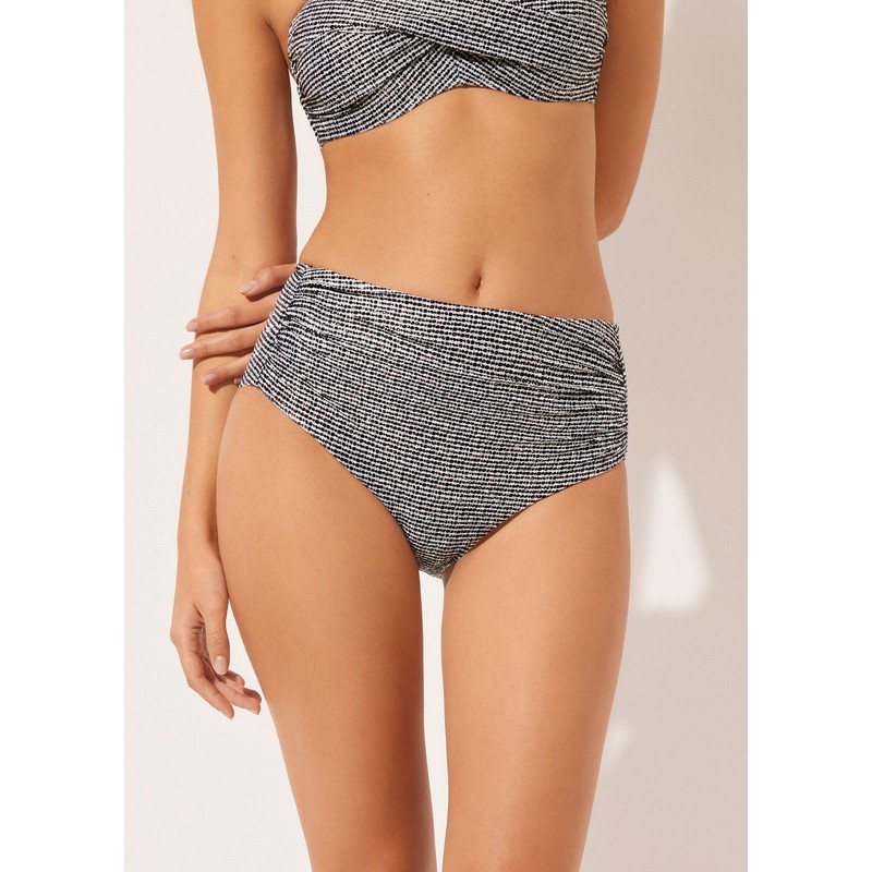 CALZEDONIA Woman's High Waist Slimming Swimsuit Bottom Black Dots in Black, Size L