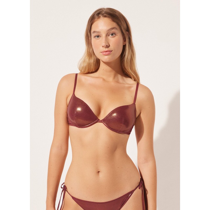 CALZEDONIA Woman's Push Up Swimsuit Top Metallic Skin in Brown, Size S