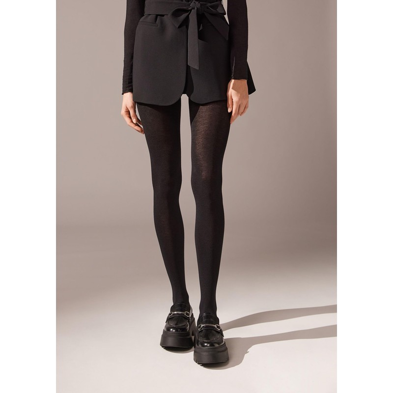 CALZEDONIA Woman's Soft Modal and Cashmere Blend Tights in Black, Size M