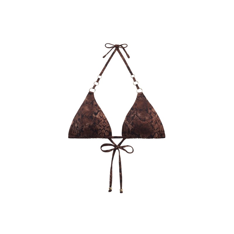 CALZEDONIA Woman's Triangle Swimsuit Top Brown Snake in Brown, Size M