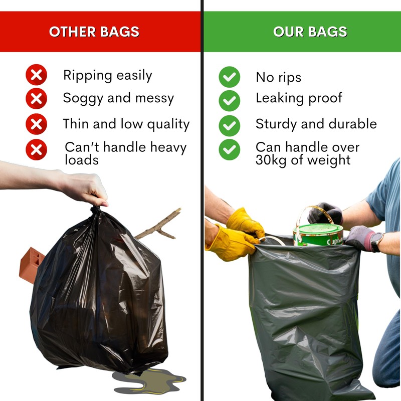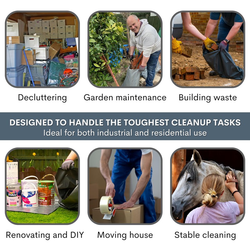 - ♻️ RECYCELTER ABFALL: Unsere strapazierfähigen Müllsäcke sind in Großbritannien hergestellt, dick und extra stark. Diese Schuttsäcke sind umweltfreundlich, da sie aus 100% LDPE-Kunststoffabfallmaterial mit niedriger Dichte hergestellt werden. Lieben Sie Ihre Umwelt! Geeignet für Industrie, Haus, Büro, Arbeit, Garten, Müll und Müll.