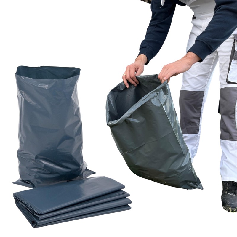 CALZETTE Robuste Müllsäcke für Bauerde, Schutt, ultrastarke Baubeutel (4 Beutel – 40 l, Grau)