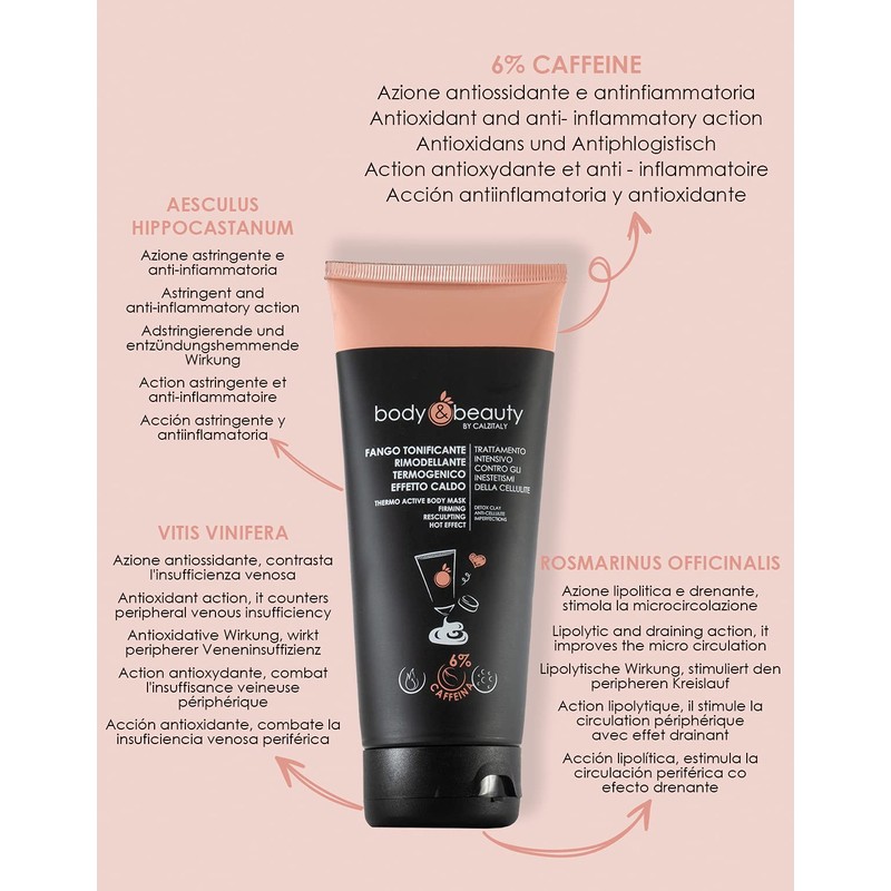 - Firming body mask – 200 ml. Strong warming and firming body mask, it is one of the most effective remedy against cellulite imperfections. Its main active ingredient is caffeine, a stimulating, diuretic and anti-inflammatory substance.