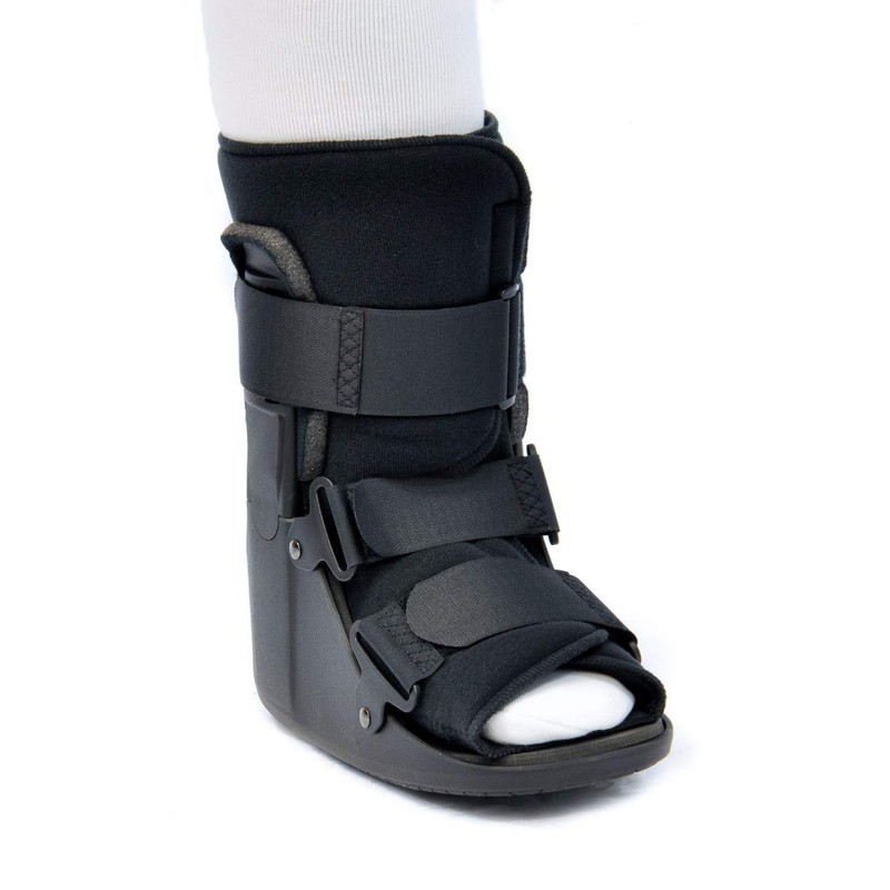 Brace Direct brings you the best in class medical fracture immobilizing boot at direct pricing. While wearing the Cam Walker Fracture Boot you will reduce pain, swelling and edema of the injured foot and speed up the recovery process. The boot is made out of a polymer material making it extremely durable for long periods of wear with your comfort in mind. The medical grade velcro straps make it easy to put on and take off when bathing and sleeping and keep you secure, stable and protected while adjusting for swelling or bandages. With the light weight, low-profile rocker design you will walk more naturally and continue with your regular day's activities without feeling encumbered by a heavy walking brace or cast. The interior ultra soft cushioned material is designed for breathability and keeps you feeling cool and dry. The open toe area allows maximum airflow while also ensuring a comfortable fit for adjusting and removing bandages or socks. Controlled ankle movement support during everyday wear. Our walker boot provides ankle support after acute ankle sprains or fractures.Indications:Acute Ankle Sprains Soft Tissue Injuries Foot and Ankle FracturesBunions Post-Operative ProceduresMetatarsal FractureMeasuringCompare shoe size to sizing chart to ensure best fit