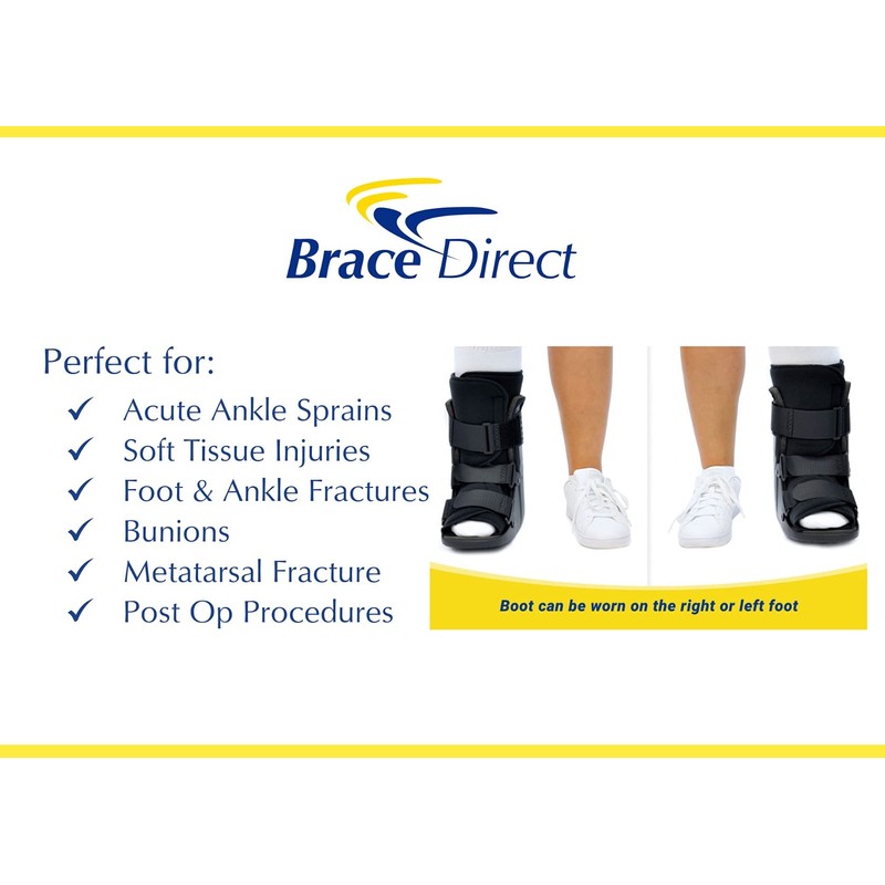 - ✔DOCTOR RECOMMENDED BOOT: Brace Direct's CAM Fracture Walking Boot is your best choice during your recovery process. Our Walking Boot is design for conditions such as stress fractures, post op recovery, sprains, soft tissue injuries, bunions and more.