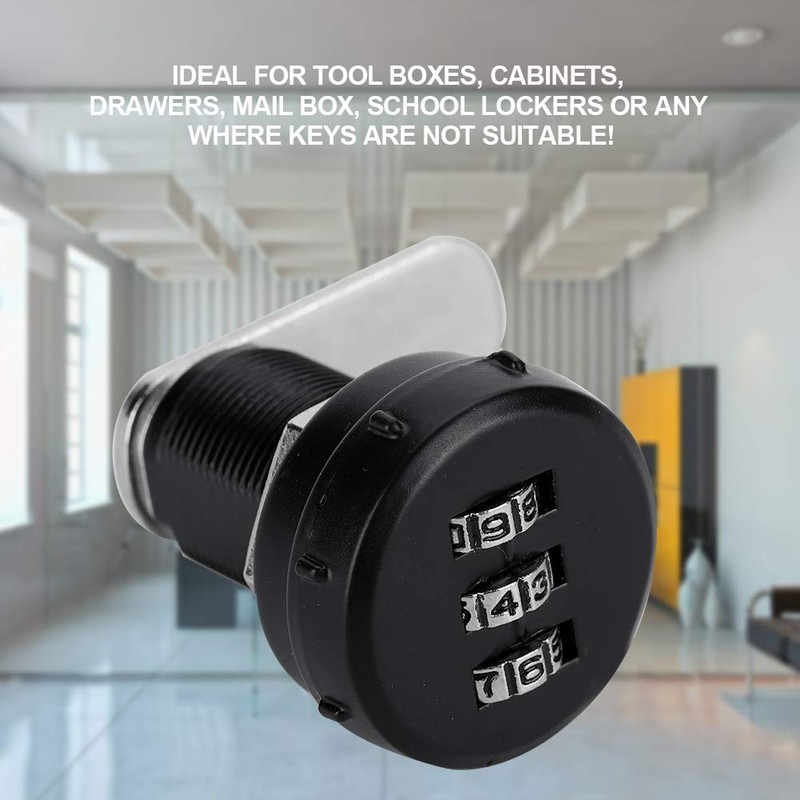 Made of zinc alloy material, strong, precision, and 3-digit combination furniture cabinet digital lock. The lock uses a 3-digit combination. 3 wheel combination original dial set to 0-0-0. Ideal for tool boxes, cabinets, drawers, mail box, school lockers or any where keys are not suitable! No screw needed, easy to install.