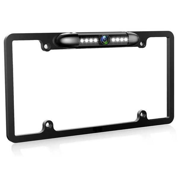 Camara de Reversa para Auto,Cámara de Visión Trasera para Placa de Matrícula Nocturna HD con 8 LED Ángulo de Visión de 170° ,Cámara Reversa Inalámbrica de Matrícula Trasera Universal Impermeable