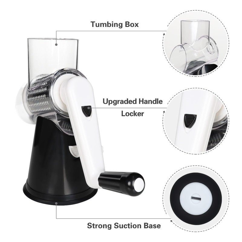 Cambom Cambom Rotary Cheese Grater Hand Crank Cheese Shredder for Fresh Cheese, Vegetable, Nuts,Non-slip Suction Base, Free Cleaning Brush Three Blades, Black