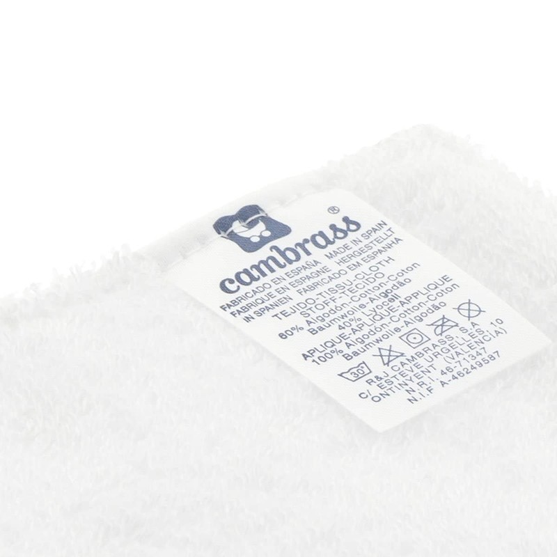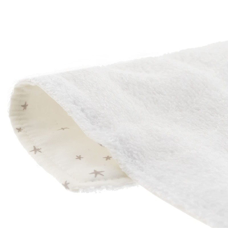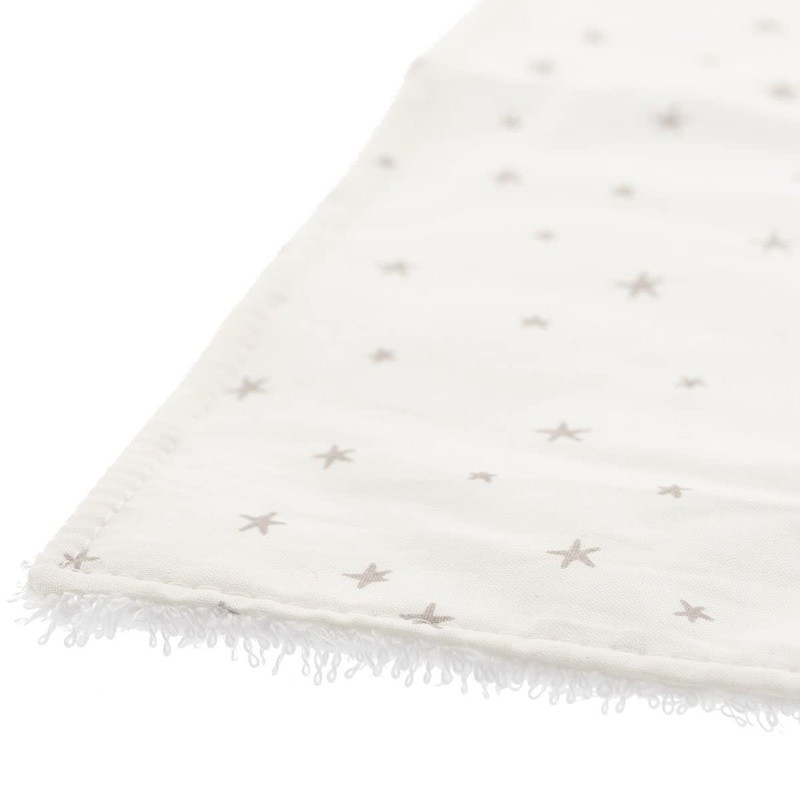 - Composition: the front with printed textile is 100% cotton, but the part that directly contacts the baby's skin to dry the saliva is made of 70% cotton, 30% tencel, absorbent and soft fibre.