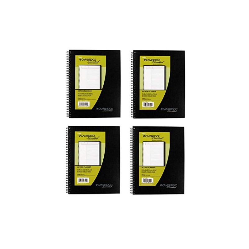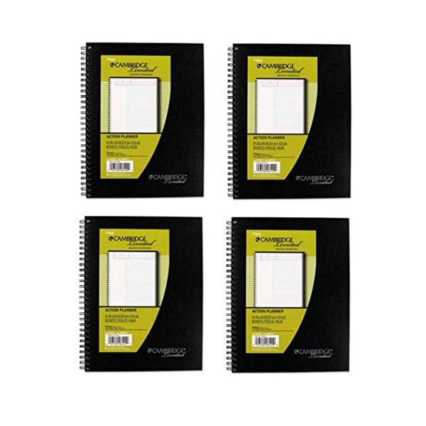 Cambridge 06122 Action Planner Side Bound Business Notebook, 7 1/2 x 9 1/2, Black, 80 Sheets, Sold as 4 Pack