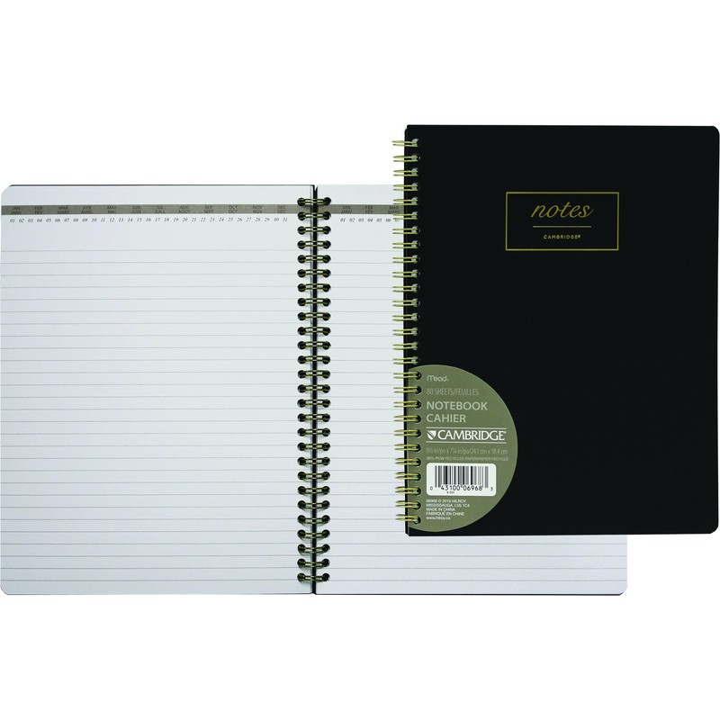 Cambridge 06968 Work Style Twin Wirebound Business Notebook, 9-1/2 x 7-1/2", 80 Sheets, Black