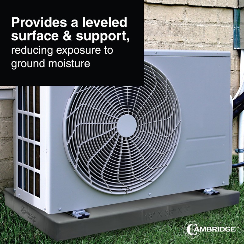 • Cambridge pads support air conditioner mini split condenser units, providing a leveled surface above ground which reduces exposure from moisture. The equipment pad's solid wall construction prevents cracks and chips and has remarkable load bearing capacity.
