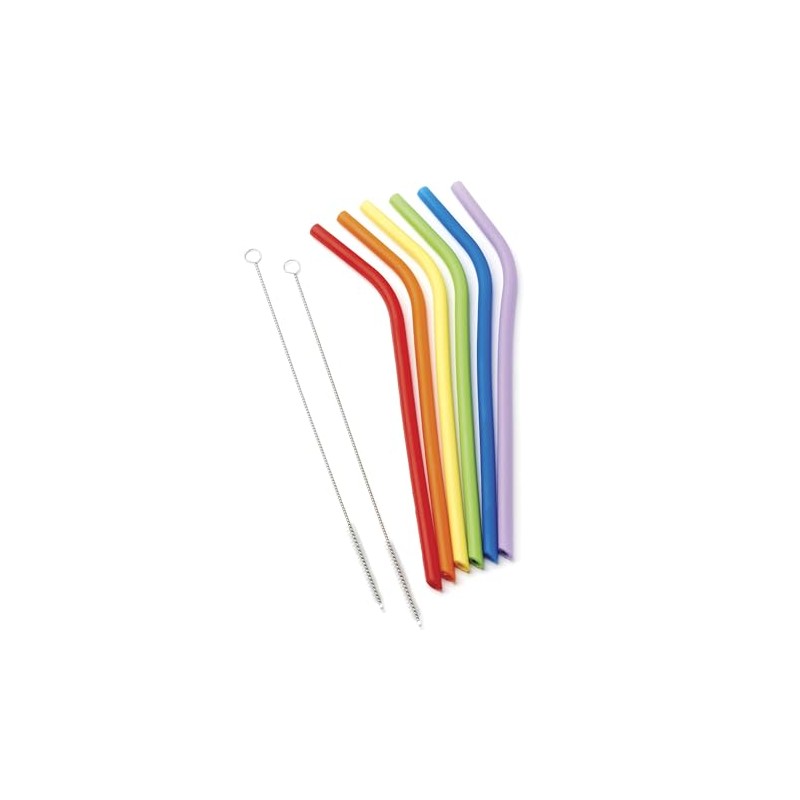 Cambridge ESTR1MTCB1BM 8-Piece Bent Rainbow Silicone Straw Set