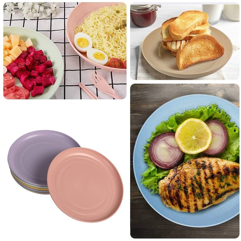 CAMBUY CAMBUY Wheat Straw Plates Lightweight Unbreakable Dinner Dishes Plates Set Dishwasher & Microwave Safe (Small 6 Pack 5.9')