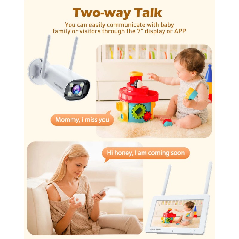 Camcamp Wireless Security Camera System with 7" Touchscreen Monitor & 2PCS 2K 3MP