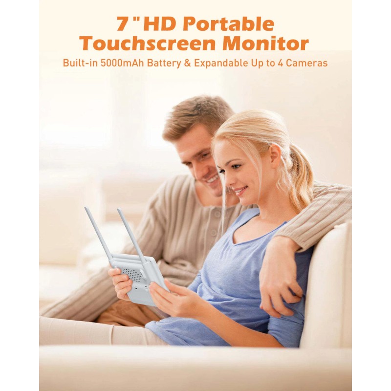 🖥️7" Portable Touchscreen Monitor - This wireless security camera system is equipped with a 7" portable touchscreen monitor with a built-in 5000mAh rechargeable battery, which can be carried within a few hours within the signal range of the camera for instant viewing, without the shackles of cables. Compared to the previous generation of button-controlled displays, touch operation is more convenient.