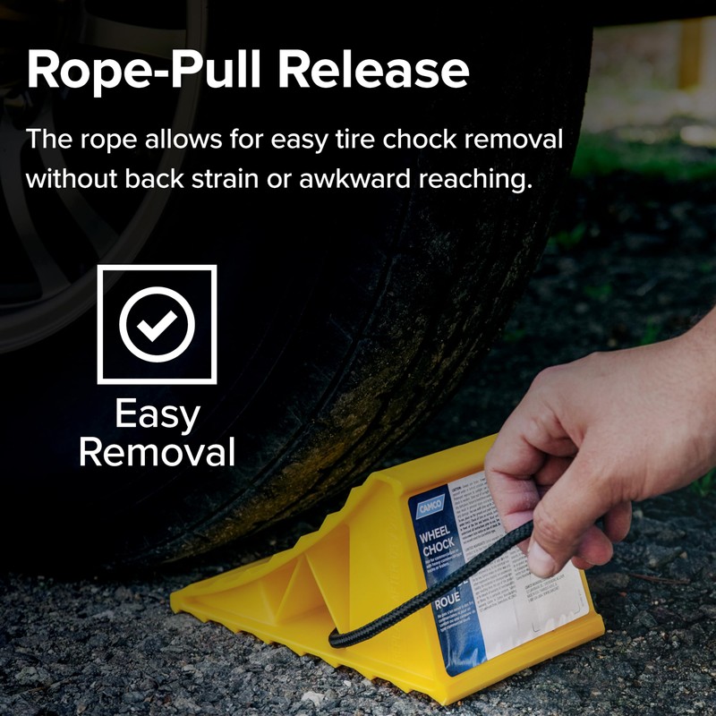 - Safe & Easy Removal: The attached rope makes removing the tire chocks safe and easy, allowing you to quickly prepare for your next adventure without straining your back or reaching into tight spaces.