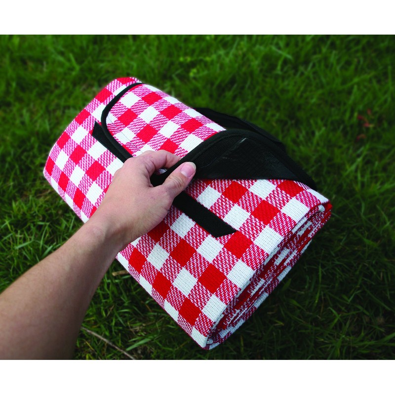 Camco's Picnic Blanket is great for outdoor outings such as picnics, tailgating, camping or as an emergency blanket in your RV. It measures 51" x 59" and is red and white. Its durable waterproof backing with foam cushioning adds comfort and insulation. The hoop-and-loop fastener keeps the blanket folded for storage. It folds compactly to 3" x 8.5" x 13".