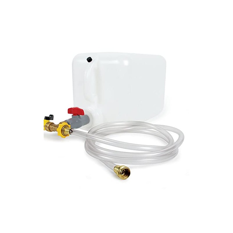 - Includes: This marine winterizing kit includes an antifreeze tank with an on/off valve, ball valve, winterizing tee, and a reinforced clear hose with fittings