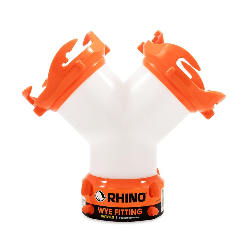 Camco RhinoFLEX RV Wye Sewer Hose Fitting with 360 Degree Swivel Ends | Allows for Two Sewer Hoses to Connect to the Same Dump Station | Ideal for Motorhomes (39812), Orange