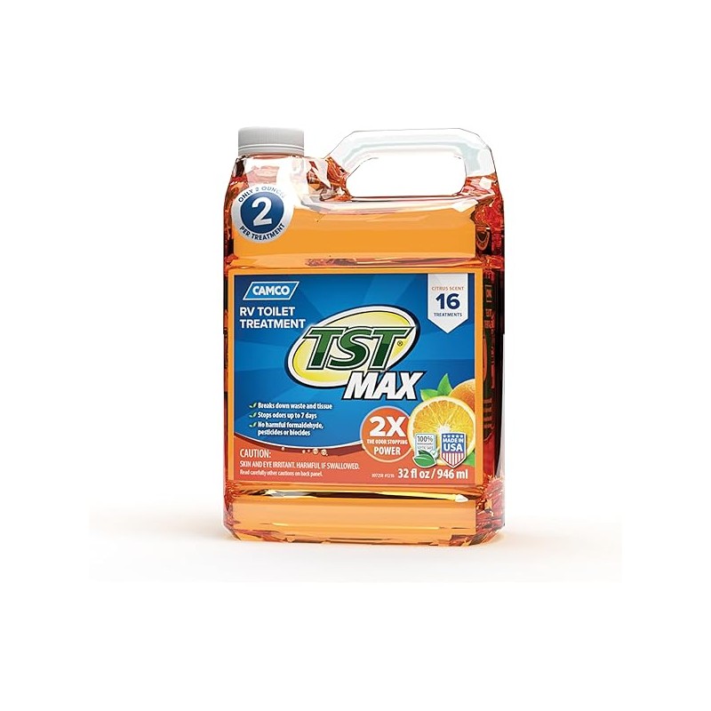 Camco TST MAX RV Toilet Treatment 32 oz. - Control Unwanted RV Sewer Odors & Break Down Waste and RV Toilet Paper - Biodegradable Septic Safe Formula - Orange Scent (41192)