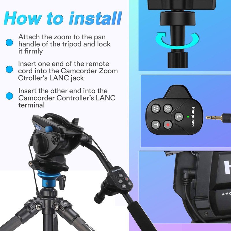 • [LANC Interface Compatibility] The Camcorder Zoom Controller ZC-2 features a 2.5mm LANC interface and includes a 2.5mm Female to Sony AVR Adapter cable, ensuring compatibility with a wide range of Canon and Sony camcorders. This versatile controller allows you to manage zoom, video recording, and photo functions effectively.