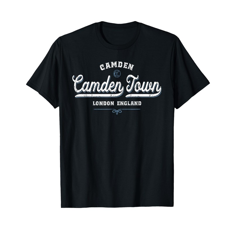 - Camden Town London tshirt. Vintage, weathered design for the distressed look. Tee shirt representing the cool, eclectic Camden Town neighborhood of north west London England UK