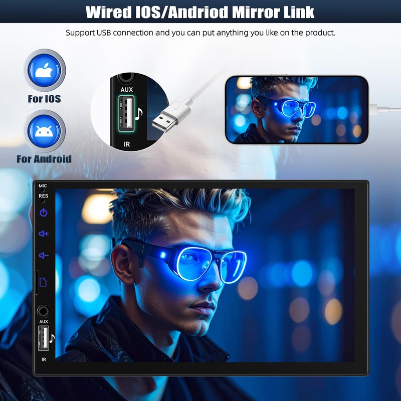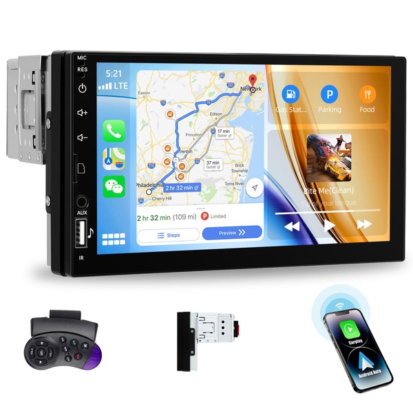 - Wireless carplay and Android car: 1 DIN radio support wireless Bluetooth and wired USB connection for CarPlay/Android car function. You can easily receive calls, navigate, play music, watch videos and other operations by voice control.