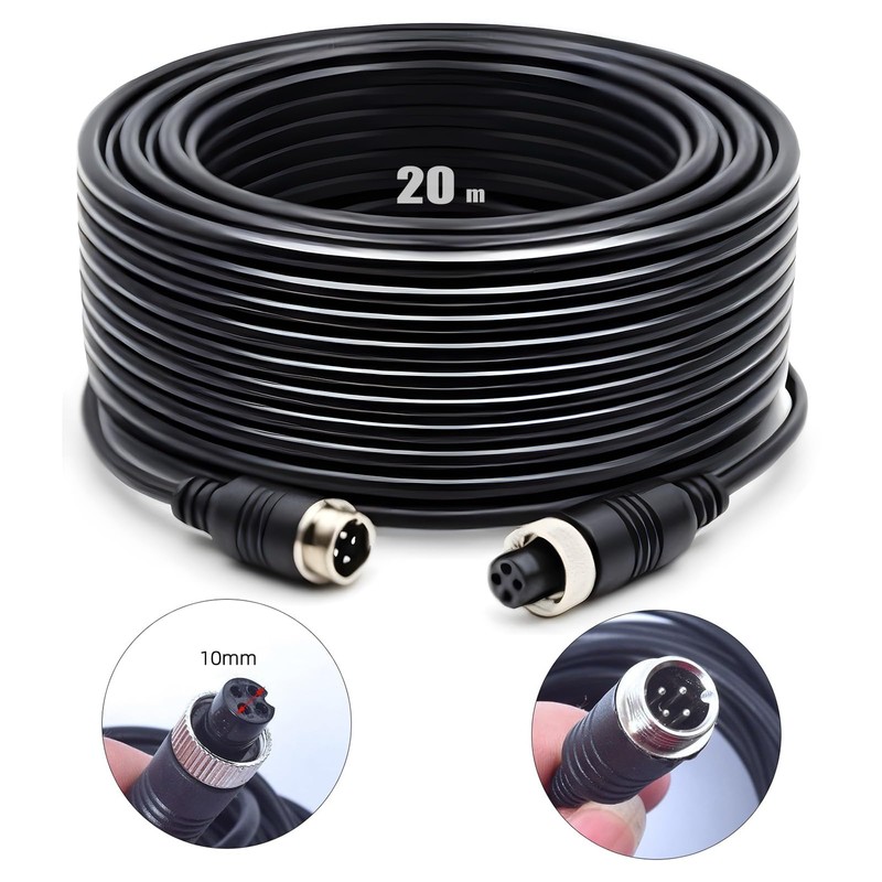- 20 m rear view camera extension cable is designed for 4-pin rear view camera car camera monitor, easy wiring. Plug and play, no need for complicated installation process.