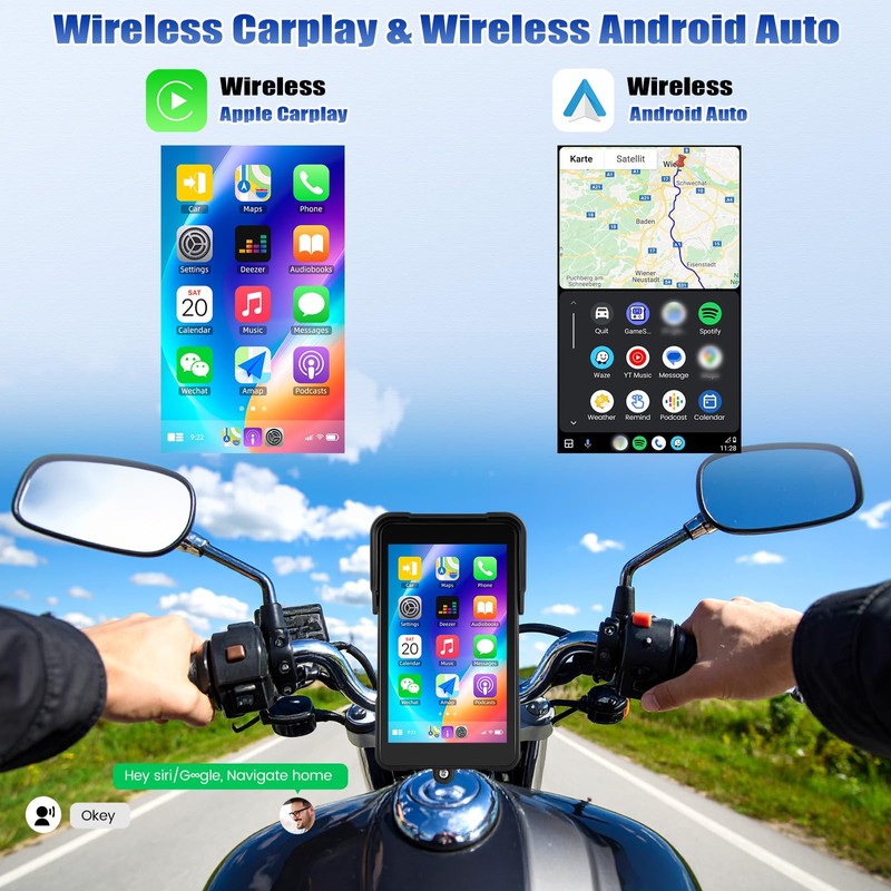 - [5 inch touch screen & wireless carplay Android car]: CAMECHO 5 inch touchable motorcycle navigator supports wireless carplay and Android car connectivity to bring most of the apps in your phone to the screen. With just one touch, you can master the call, navigation and music play functions with simplicity and elegance. You need to connect carplay/Android car to the navigation, the device itself cannot navigate.