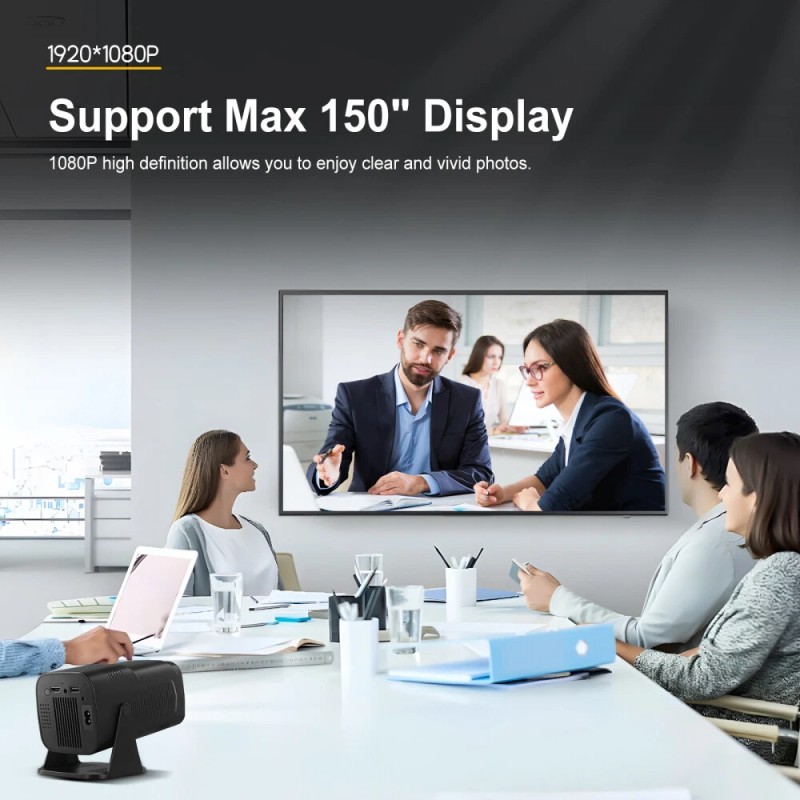 5. Support Max 150'' Display :The mini projector supports Full HD videos decord, with 1920*1080 max resolution,revel in every detail and vibrant color on a max 150'' screen display, creating unforgettable visual experience.