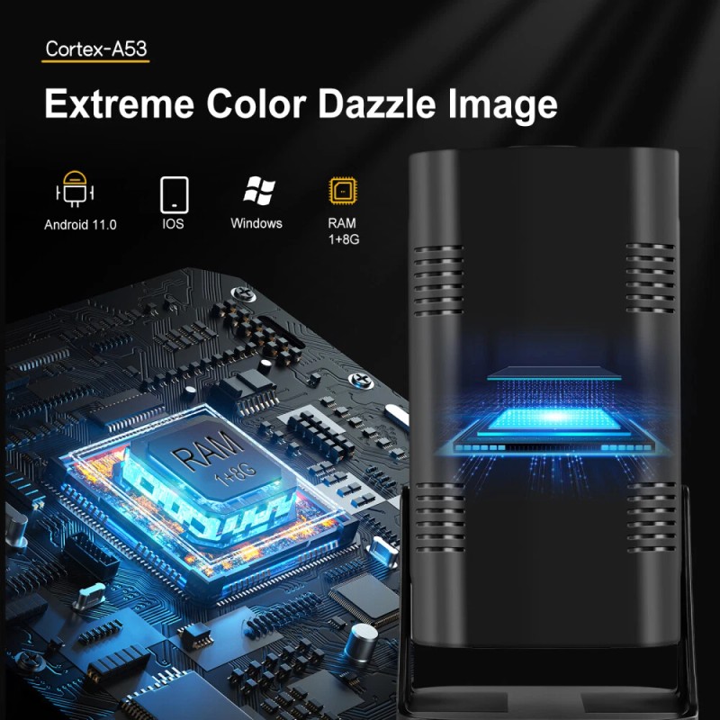 Portable projector, restore natural color, improve the overall picture color brightness, provides excellent viewing experience.