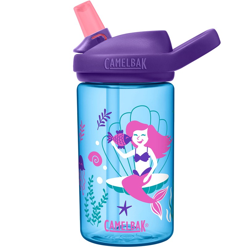 CamelBak Eddy+ Botella de agua para niños de 14 onzas con Tritan Renew, parte superior de popote, a prueba de fugas cuando está cerrada, sirenas mágicas