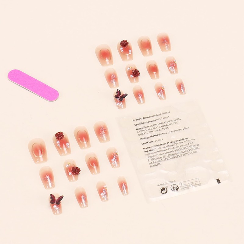 - 【Package Contains】You'll get 24 pieces false nails. 1 mini nail file, 1 small wooden stick, 1 piece of nail glue sticker. Nail glue sticker are perfect for most people's nails.
