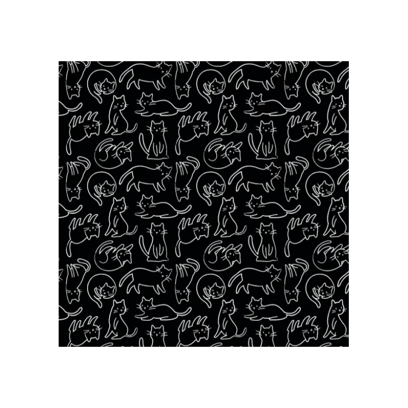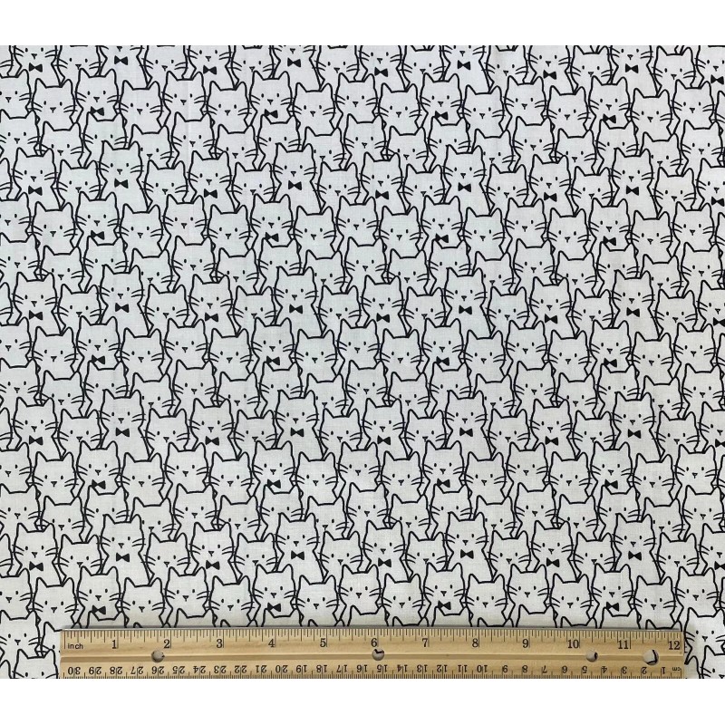 Camelot Fabrics Fabric FQ Fat Quarters Set 5 Cat Kitten Black & White Meow Paw Print 100% Cotton