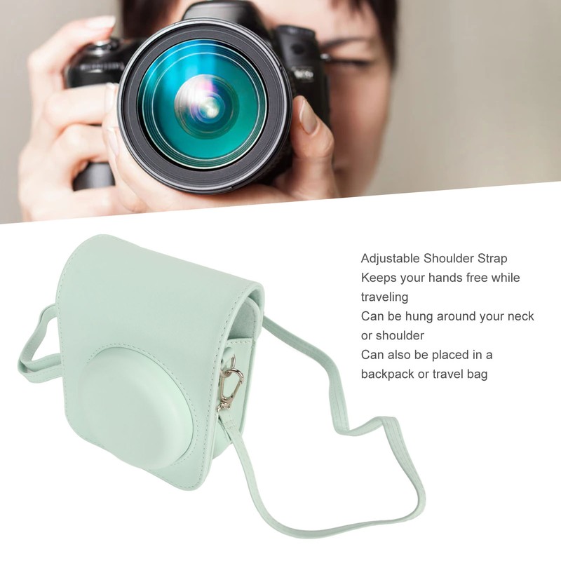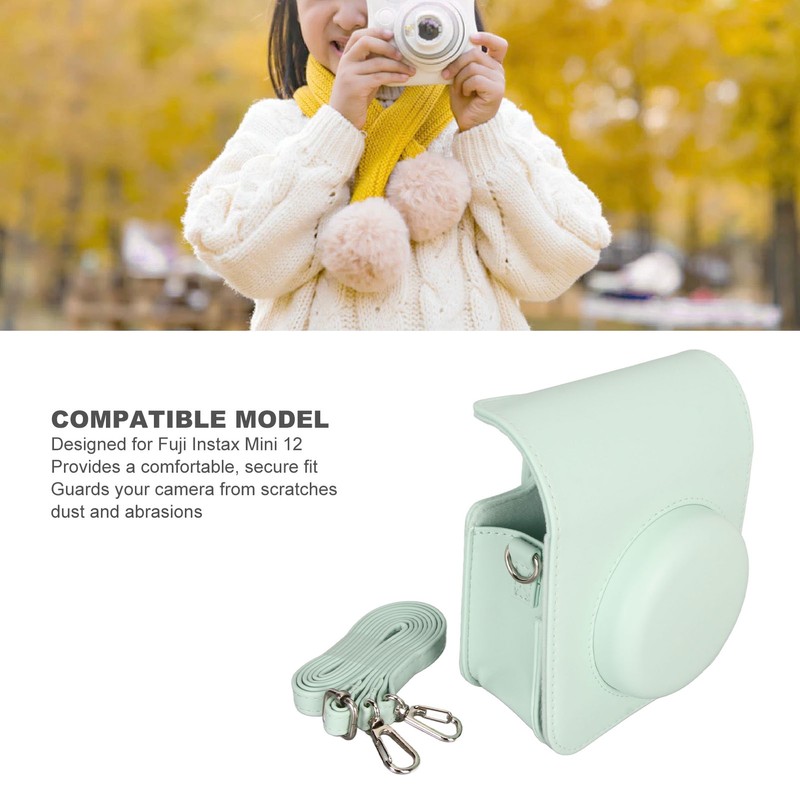 Camera Case PU Leather Protective Camera Cover Bag with Adjustable Shoulder Strap for Fuji Instax Mini 12 Green