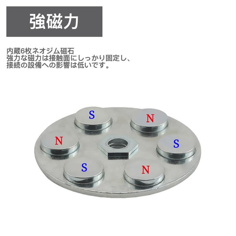 - (High load) Maximum load capacity of approx. 22.0 lbs (10 kg). Built-in multiple neodymium iron boron strong magnets are arranged at NS intervals to produce powerful magnetic suction